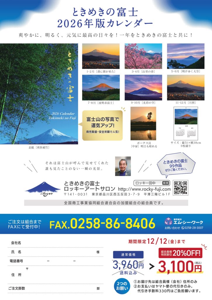 新年2026年用に、【ときめきの富士カレンダー】はいかがですか?